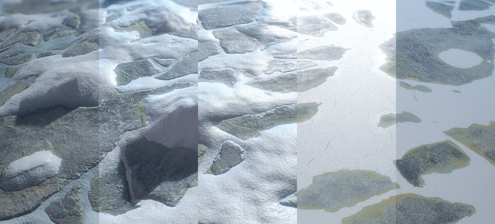 Process breakdown: (from right to left) Albedo, Roughness, Normal Map, Height Map, Occlusion Map, SSS
