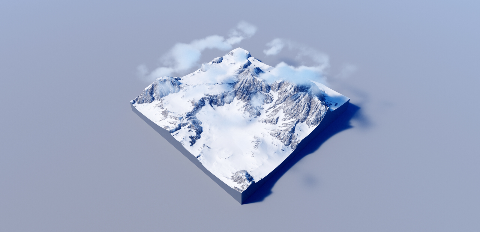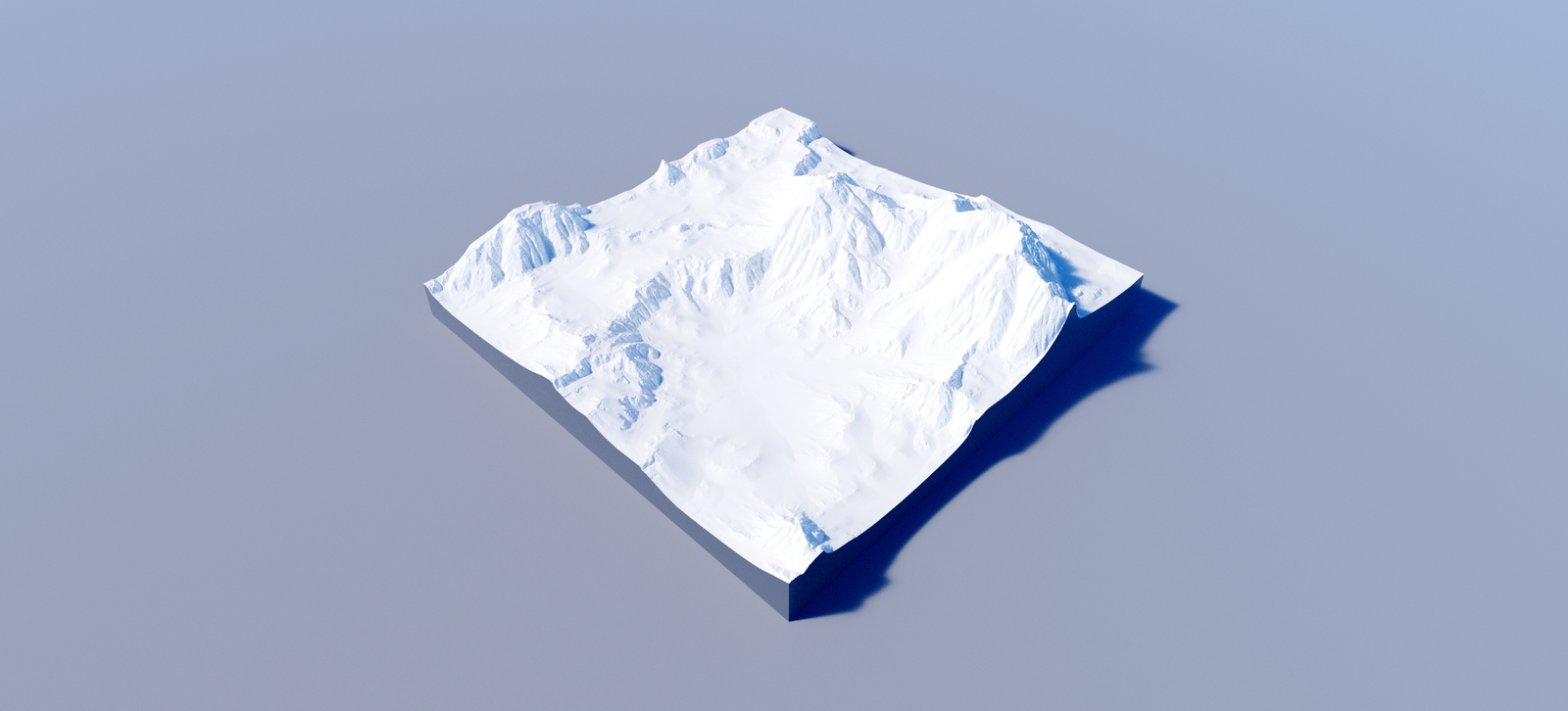 Snow mountain biome environment created and render using World Creator. I used additional custom textures for the snowy mountains.